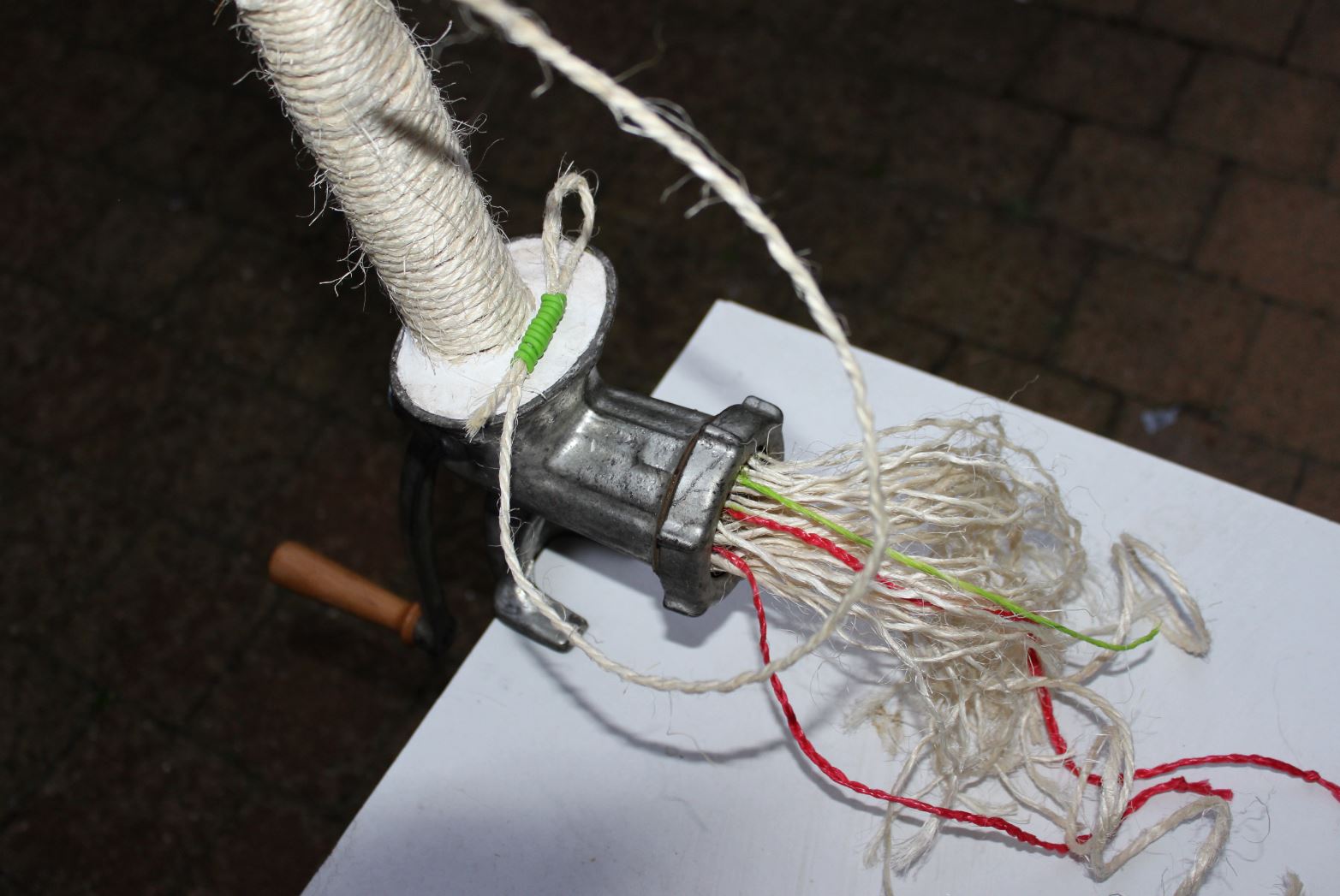 An old meat grinder, a branch from my lost garden, sisal rope (thanks, Cornelius!) bought on Marktplaats