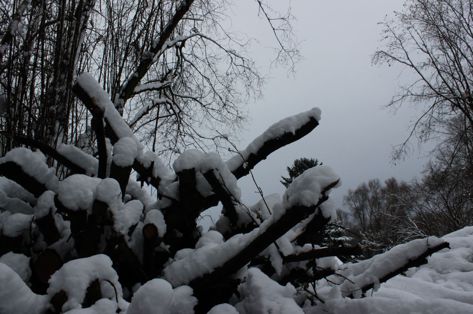 The odd and beautiful shapes of the branches and trees are very inspiring, and today I started an art project, using material from the ‘lost’ garden. I plan to document it here, with photographs.